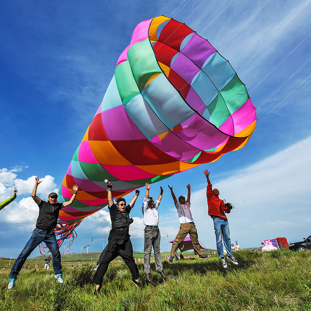 亮点四:比赛期间由40人组成的运动风筝团队挑战吉尼斯团体风筝放飞纪录。